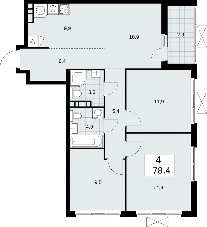 Продаю 4-комн. квартиру с европланировкой площадью 78.4 кв.м., без отделки, на 19 этаже из 19 в жилом комплексе комфорт-класса "Бунинские кварталы". Квартира угловая, а окна, выходящие на разные стороны дома, дают paвнoмepнoe ocвeщeниe комнат в тeчeниe дня. Высокий этаж позволяет наслаждаться отличными видами. В квартире одна лоджия, два совмещенных санузла. Высота потолков 2.85 м.