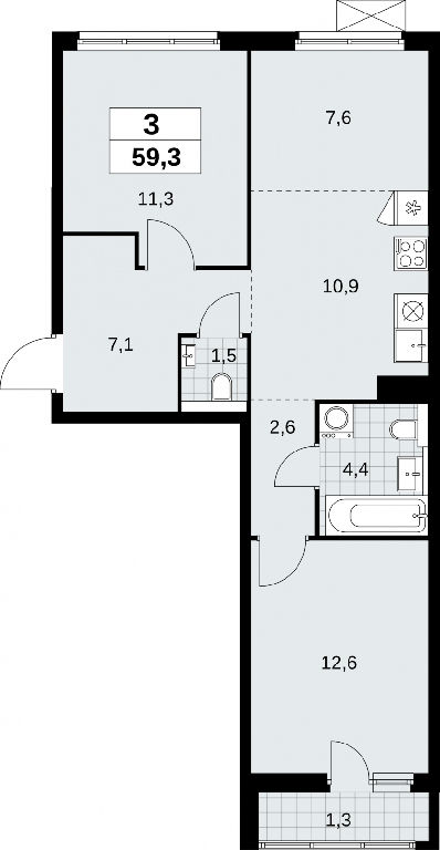 Общая: 59,3 м2