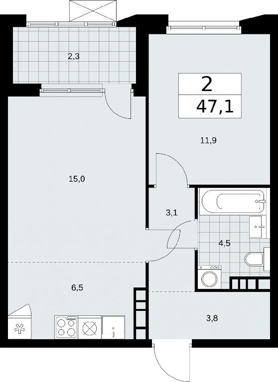 Продаю 2-комн. квартиру с европланировкой площадью 47.1 кв.м., без отделки, на 17 этаже из 22 в жилом комплексе комфорт-класса "Бунинские кварталы". Изолированные комнаты, все окна выходят на одну сторону. В квартире одна лоджия, один совмещенный санузел. Высота потолков 2.95 м.