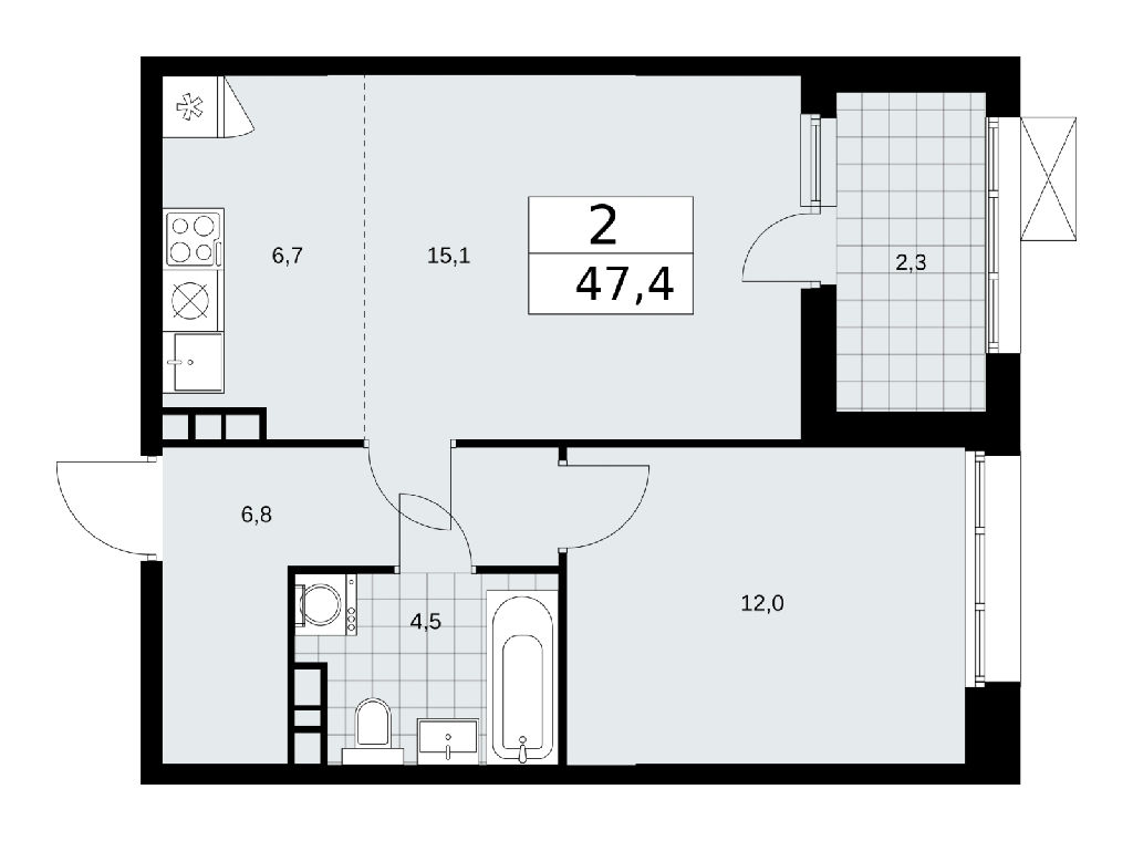 Продаю 2-комн. квартиру с европланировкой площадью 47.4 кв.м., без отделки, на 10 этаже из 21 в жилом комплексе комфорт-класса "Бунинские кварталы". Изолированные комнаты, все окна выходят на одну сторону. В квартире одна лоджия, один совмещенный санузел. Высота потолков 3.1 м.