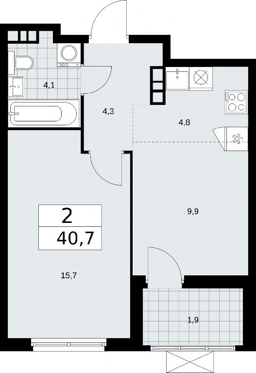 Продаю 2-комн. квартиру с европланировкой площадью 40.7 кв.м., без отделки, на 12 этаже из 19 в жилом комплексе комфорт-класса "Бунинские кварталы". Изолированные комнаты, все окна выходят на одну сторону. В квартире одна лоджия, один совмещенный санузел. Высота потолков 2.85 м.